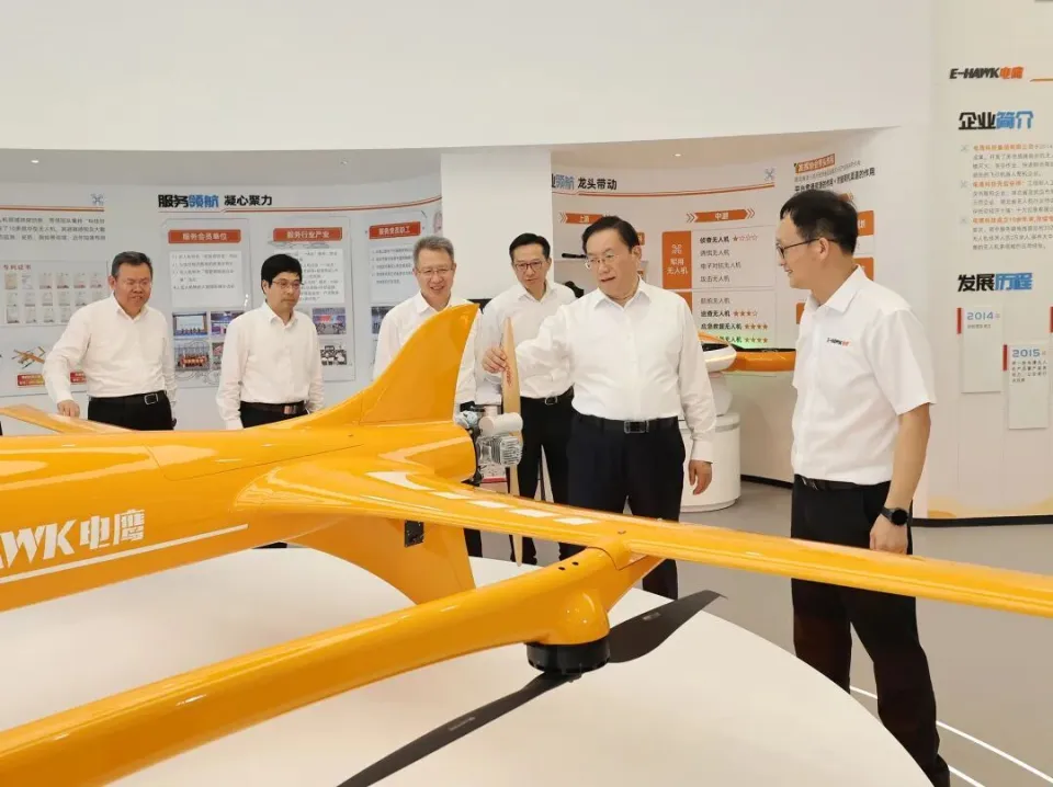电鹰科技有限公司,专注于中大型 AI 无人机系统的研发生产、应用服务及技能培训,是一家高新技术企业。其主要产品涵盖物流无人机、工业级垂直起降无人机、电动垂直起降飞行器等。王忠林来到该企业,实地观看产品展示以及无人机载重、灭火、物流等功能演示,深入了解企业研发与生产情况,并与企业负责人亲切交流,广泛征求意见建议。王忠林强调,“对于低空经济企业而言,拓展市场是实现规模增长的基础。” 他叮嘱省、市相关部门,要加强跟踪服务,加大政策支持力度,积极搭建 “出海” 服务平台,助力无人机制造企业顺利开辟国际市场,实现更快更好的发展。